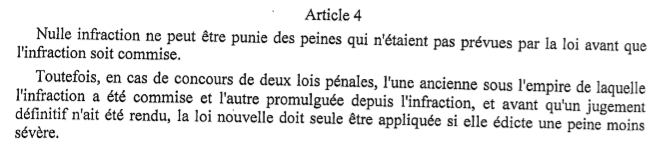 L’article 5 du même code parle également des lois qui peuvent être appliquées immédiatement même si les infractions ont été commises avant leur entrée en vigueur.